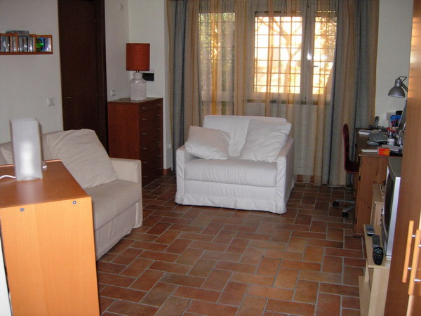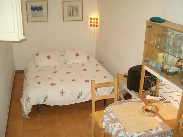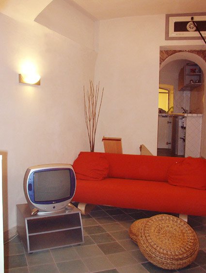 AUSSTATTUNG: moderner Standard, ca. 20 qm, 1 Zimmer mit Doppelbettschlafsofa, Sessel, kleiner Tisch, Schrank, TV (kein SAT), Air Condition/Ventilator, Kochgelegenheit (2-Flammen-Herd, kleiner Kühlschrank, Küchenutensilien), Zimmer terrakottagefliest, Duschbad/WC/Bidet gefliest, Internetanschluß