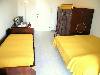 AUSSTATTUNG: in 2-Personen-Haushalt mit kleinem Hund, einfach eingerichtete Zimmer: 1 großes Zimmer mit Doppelbett, hellen Schränken, Sofa, TV, Ventilator, kleinem Tischchen, Hocker, Sessel, Spiegel und ein kleines Zimmer mit Doppelbettschlafsofa blütengemustert, weißer Kleider-schrank, kl. TV (kein SAT), Radio, Spiegel, kleiner Tisch, 2 Stühle, hell gefliest, zur Mitnutzung: 1 kleines Duschbad/WC, Föhn und Küche zum Frühstücken